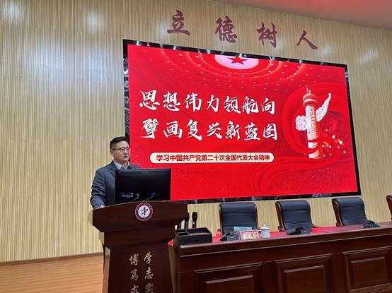 首先,遵义市第一中学党委书记穆浩勋介绍会议议程。一是就两校思想政治教育一体化联合建设工作进行研讨;二是由yl7703永利集团经理谷松岭作“思想伟力领航向 擎画复兴新蓝图”的二十大精神主题宣讲。随后,yl7703永利集团经理谷松岭作简单发言,希望通过本次研讨会,能落实关于联合建设的一些具体事务。公司党委书记王沁也发言表示中学和大学的教学方法存在共性,值得相互借鉴,希望通过合作,提升双方的教学水平,推进遵义市大中小思政教育一体化的探索。