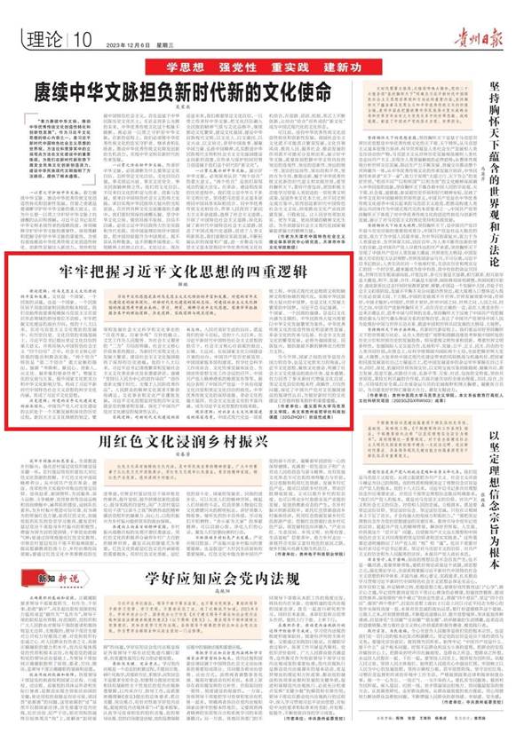 《贵州日报》刊发公司yl7703永利集团教师理论文章《牢牢把握习近平文化思想的四重逻辑》